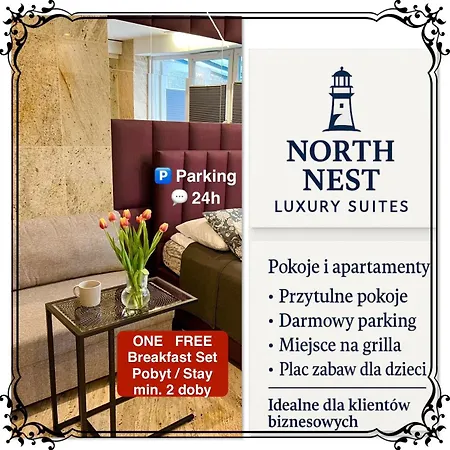 Apartmán North Nest Luxury Suites nabízí kuchyňku i pokoje s minibarem, přístrojem na přípravu kávy a čaje, TV se satelitními kanály. Národní námořní muzeum v Gdaňsku je 2 km od apartmánu, zatímco Gdaňsk je umístěno ve vzdálenosti 2,1 km.